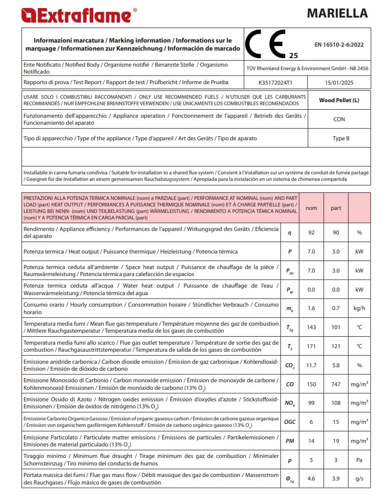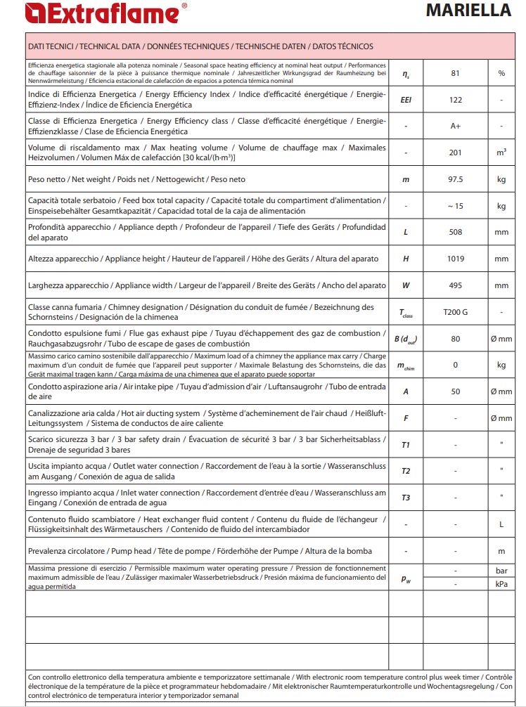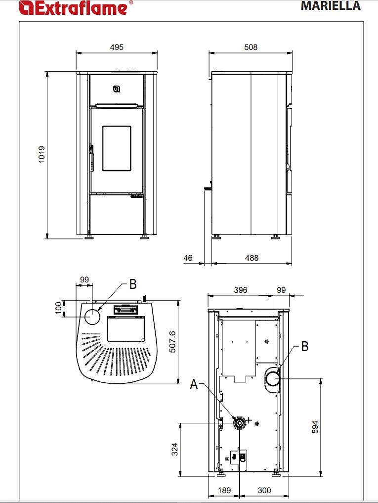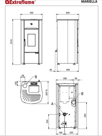 Denne ovn kan tilsluttes i toppen, afgang sidder i venstre side af ovnen.Kan også tilsluttes bagud.