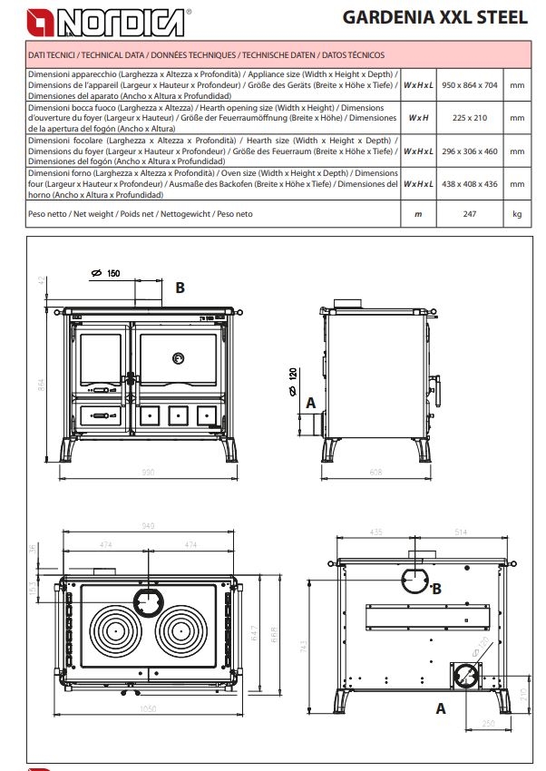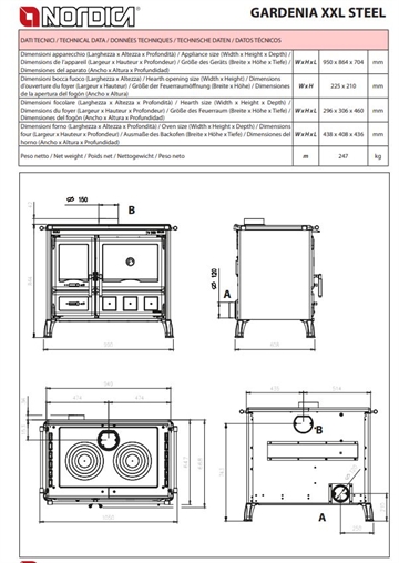 Gardenia XXL brændekomfur med 2 kogesektioner og ekstra stor bageovn